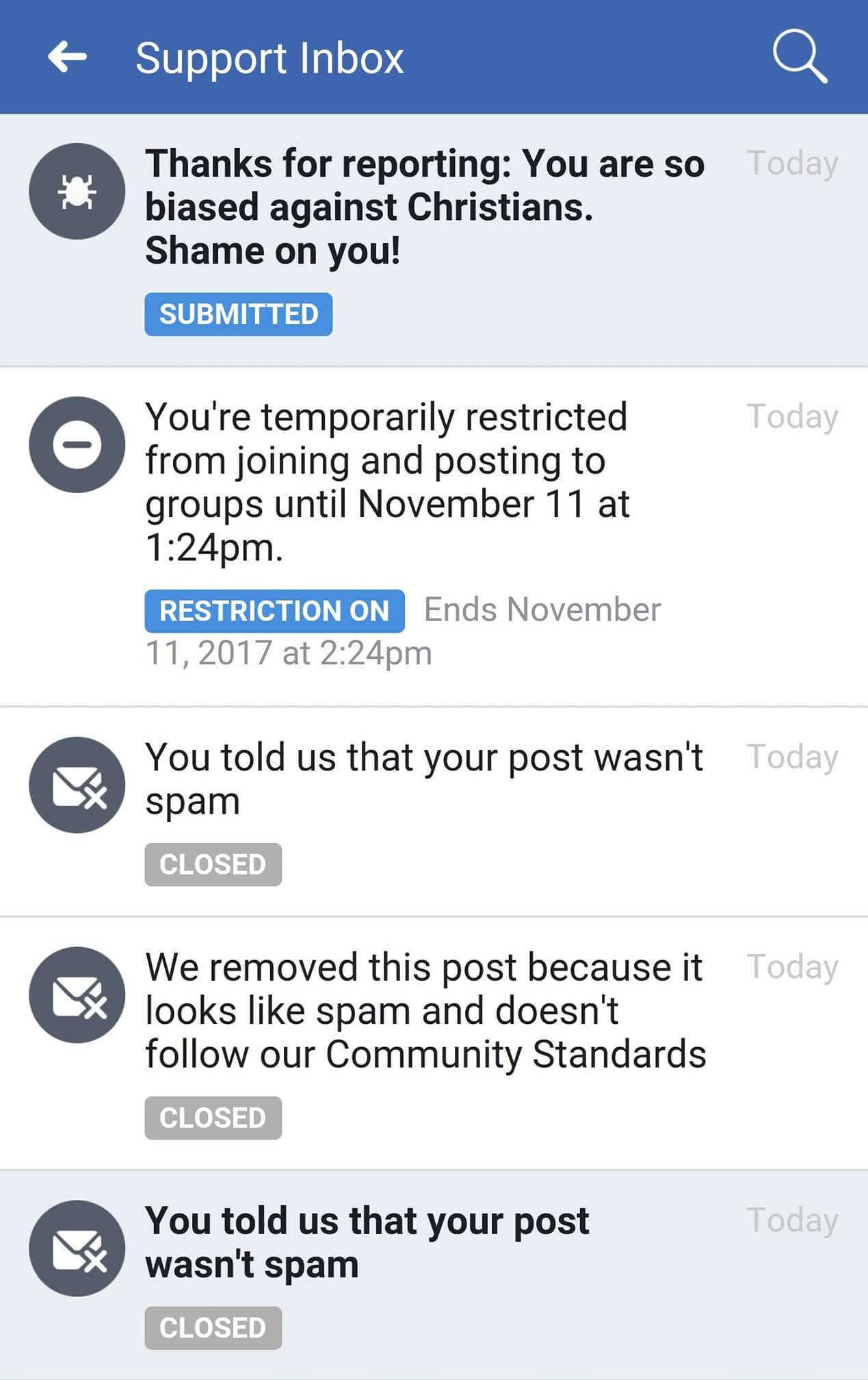 I contacted the Activist Mommy, Elizabeth Johnston, whom Facebook earned unwanted negative media attention for, after they suspended her account for simply posting what the Holy Bible says about homosexuality. She has since become a household name and Facebook is very careful about how they treat her now. She put me in touch with a representative from Facebook whom she is working with to prevent discrimination against her on the platform. I provided the woman with the many screenshots proving Facebook’s obvious bias against my website, and she said that she would take a look at the evidence and get back to me.