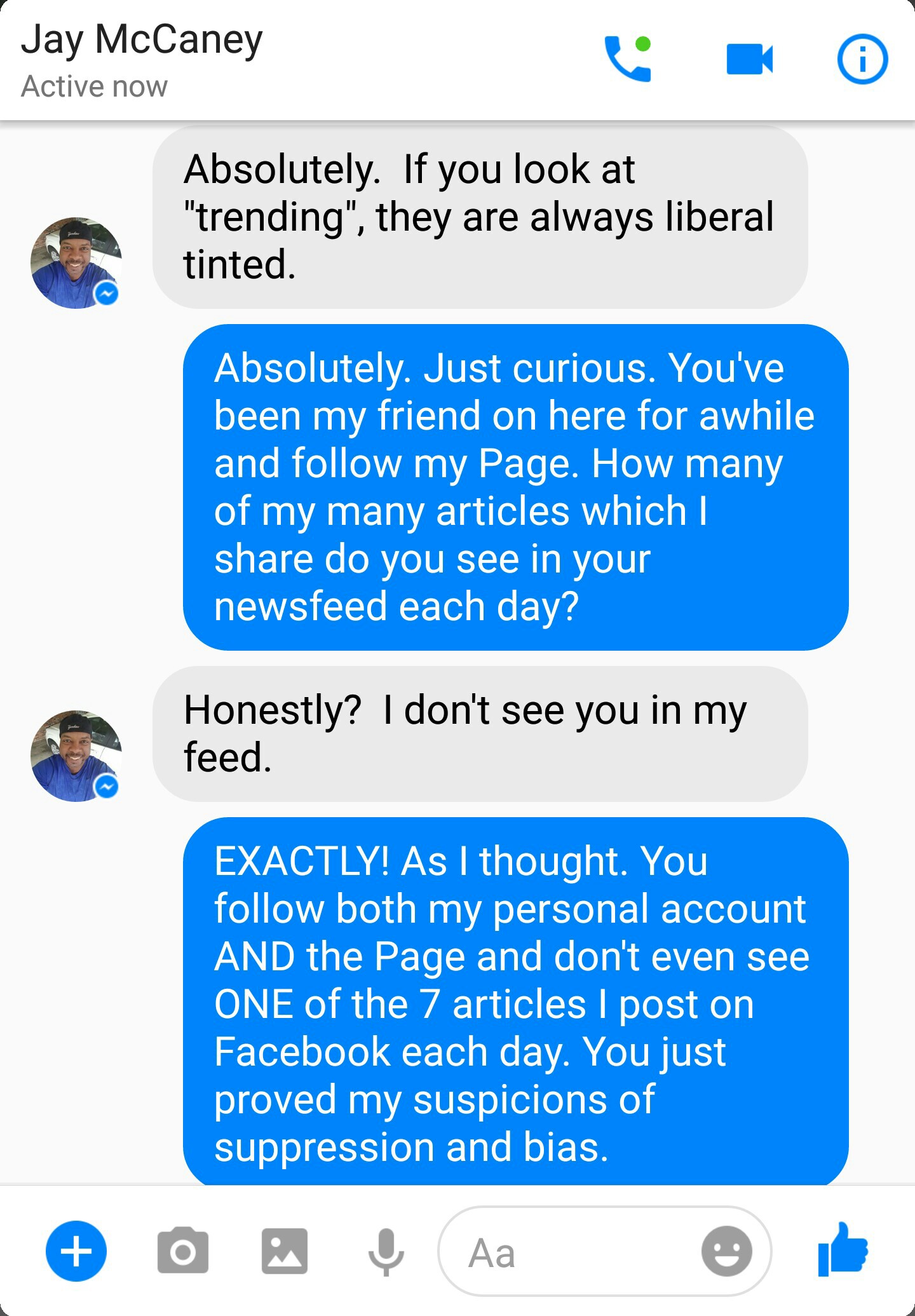 This made no sense whatsoever. As of today, I have about 600 followers on the Page, yet each post gets less than “10 views” a day. Worse, some get less than “5 views”, and some only “1 view” in a 24-48 hour period. It was becoming crystal clear that Facebook was suppressing my articles. I had always believed that they were hiding my content from friends and followers, but now I had PROOF through their own analytics tool. How in the world can I have 600 followers and less than FIVE of them see my posts? My friend Jay McCaney, host of The Christian Conservative, answered that question for me…