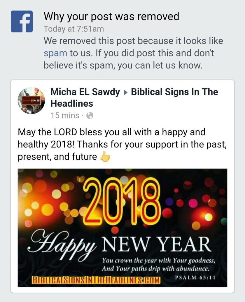 It looks like the blatant censorship will continue in 2018 unfortunately, as 48 hours after having a weeklong suspension from posting to my Group lifted, I got suspended again for another week because of “spam”. Does THIS look like spam to any of you?!?