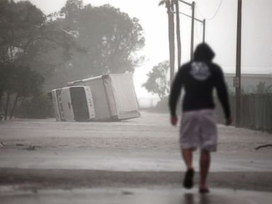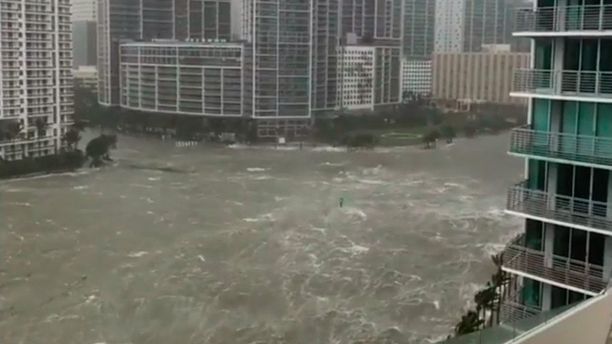▫ By Sunday afternoon, over 1 million Floridians are without power, and the number is expected to double. Tornadoes have also swept across southeast Florida. Trees and street signs have been toppled, and storm surge was bringing large waves over barriers at coastal and intracoastal areas. On Sunday, Hurricane warnings cover the entire State of Florida except the western Panhandle, where a Tropical Storm warning is in effect which is likely to become a Hurricane warning in the near future.