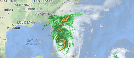 ▫ Hurricane and Tropical Storm conditions are predicted to spread into the Florida Panhandle, eastern Alabama, much of Georgia, and South Carolina by Monday. The National Weather Service in Atlanta issued a Tropical Storm watch for the city Monday and Tuesday for the first time in recorded history. Irma’s 2nd landfall is expected Sunday night near either Fort Myers, St. Petersburg, or Tampa. Still, the entire State of Florida is being affected by the large size of this monster storm, as Hurricane-force winds extend about 80 miles from the center, and Tropical Storm winds extend out for 220 miles. The entire State of Florida is under 400 miles wide from coast to coast.