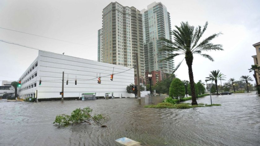▫ Jacksonville, the largest city geographically in the country, is experiencing record storm surge and catastrophic flooding. The city’s Memorial Park has become an “unrecognizable lake”. Winds have reached 90 mph at Jacksonville International Airport. The St. Johns River near Main Street Bridge in Jacksonville has experienced record storm surge flooding, not seen since 1864. At this level, extensive flooding of roads and structures will occur in the area. A storm surge of more than 5 feet has been measured along the St. Johns River at the Interstate 295 bridge.