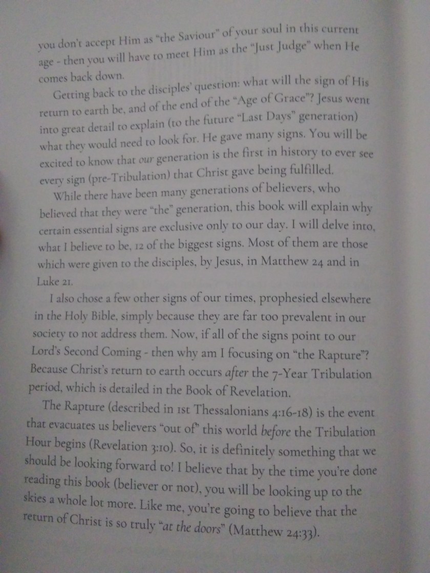A few weeks ago, I finally released my book “The Signs of Our Times: 12 Biblical Reasons Why This Could Be The Generation of The Rapture”. Thusfar, the response has been overwhelmingly positive, and I truly appreciate all of you who have bought a copy.