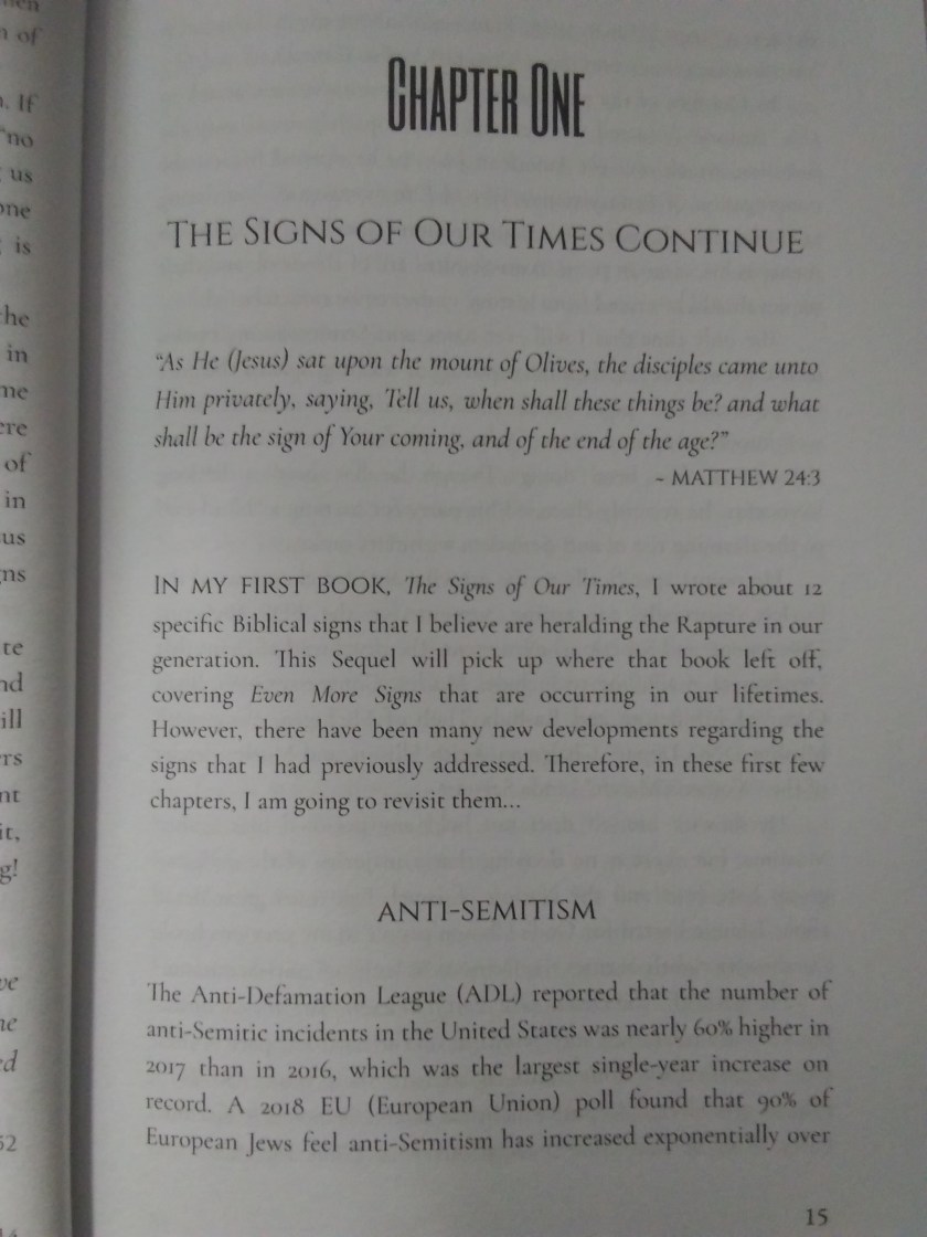 Like with my first book, “The Signs of Our Times,” I wanted to give you all a peek into the new book, “EVEN MORE Signs of Our Times.” Below you will find the first page of each Chapter in the book. Hopefully, it will inspire those of you who have not yet read it to go and grab a copy. For those of you who have read it, please share this with others to bring their attention to the book. Enjoy this preview –