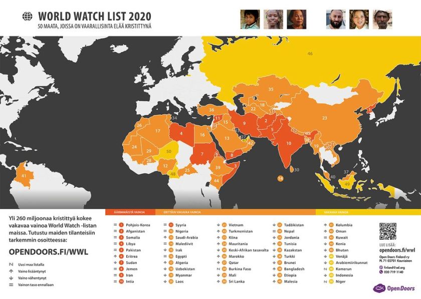 Each year, the Christian persecution watchdog group, Open Doors USA, releases its annual “World Watch List.” The list identifies the top 50 most dangerous countries for Christians today. The lists are so alarming that I wrote about the 2018 and 2019 lists in my first two books. Now, I want to share what 2020’s list has revealed about the perils that our brothers and sisters are facing worldwide.