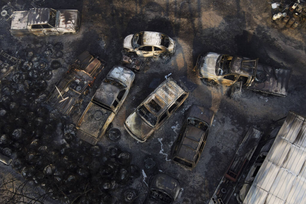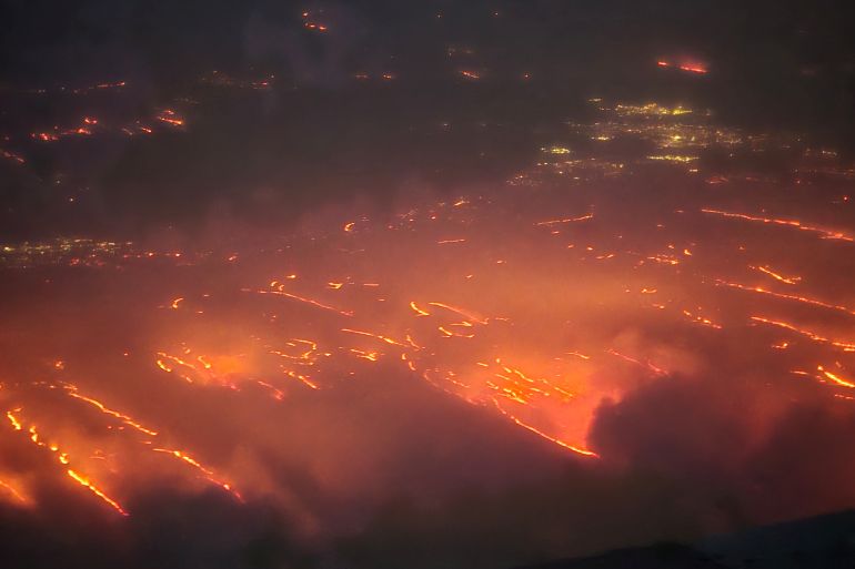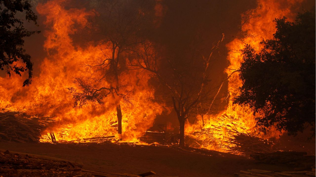 “Well, our house is still standing,” homeowner Lee Quesada said during a video tour of his scorched neighborhood. “But then, if you look over on the other side of that tree, which is on fire, two structures, neighbors, two houses down across the street on fire.”